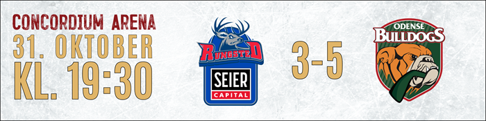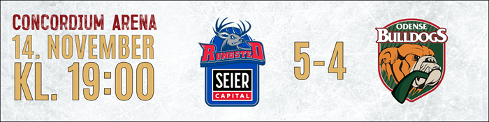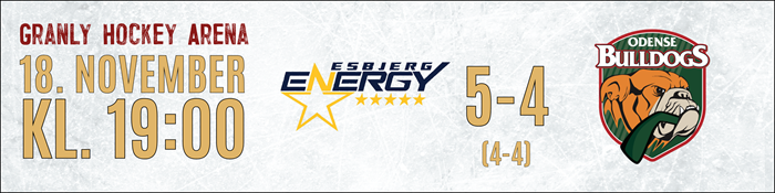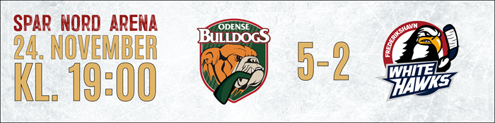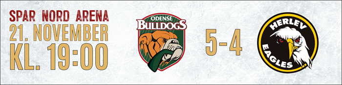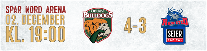 Metal Ligaen: Resultater Oversigt over træningskampe for Odense Bulldogs 2025/26 Seneste Nyt KAMPEN KORT: Rødovre overraskede de danske mestre, drømmedebut til Matushkin 16. december 2025 OPTAKT: Rødovre Mighty Bulls-Odense Bulldogs 16. december 2025 UGENS HOLD: Se hvem der er kommet med 15. december 2025 KAMPEN KORT: Det endte med storsejr til Odense 13. december 2025 OPTAKT: Odense Bulldogs-Esbjerg Energy 12. december 2025 KAMPEN KORT: De forsvarende mestre sejrede i målorgie i Aalborg 09. december 2025 OPTAKT: Aalborg Pirates-Odense Bulldogs 09. december 2025 Ekstraordinær opbakning fra sponsorkredsen sikrede Alex Grant 09. december 2025 Canadisk back med NHL-erfaring styrker den fynske defensiv 08. december 2025 Faciliteterne i Odense kostede Metal Final4 værtskabet 08. december 2025